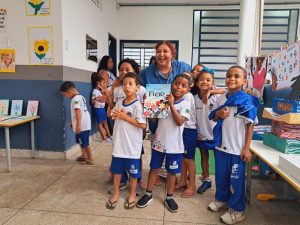 Estudantes e escritora